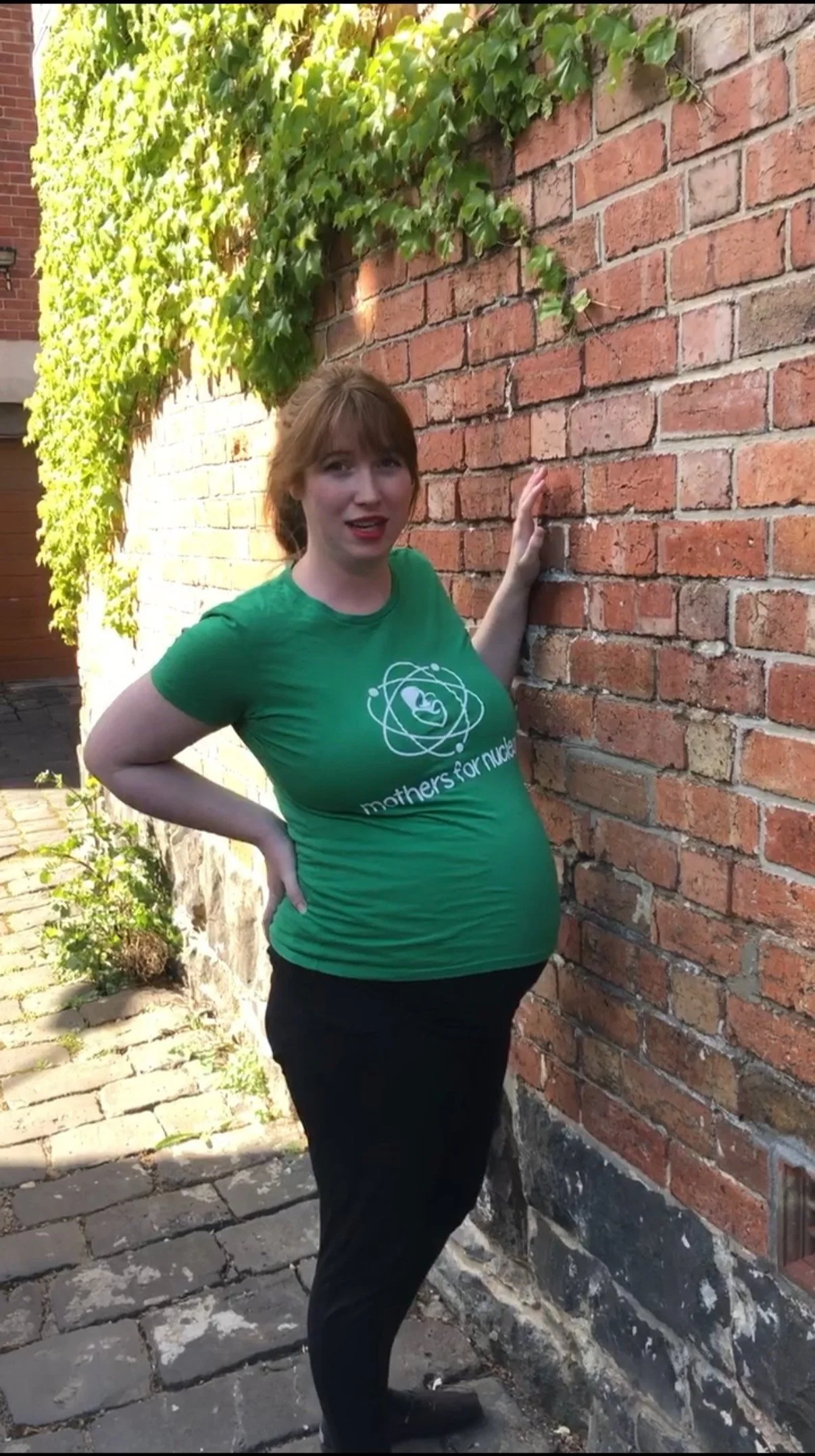 Morris, sporting a Mother’s for Nuclear t-shirt during a pregnancy.