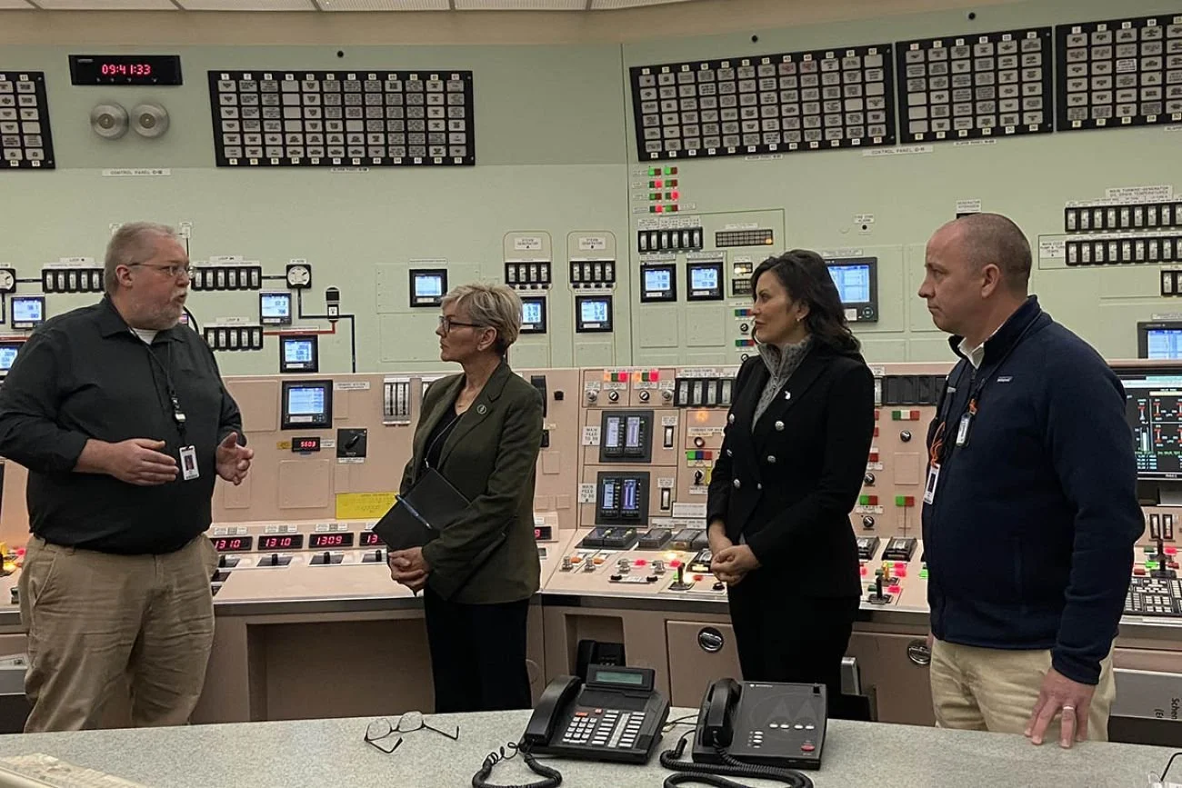 Governor Whitmer in the control room at Palisades - she supports restarting the closed nuclear plant.