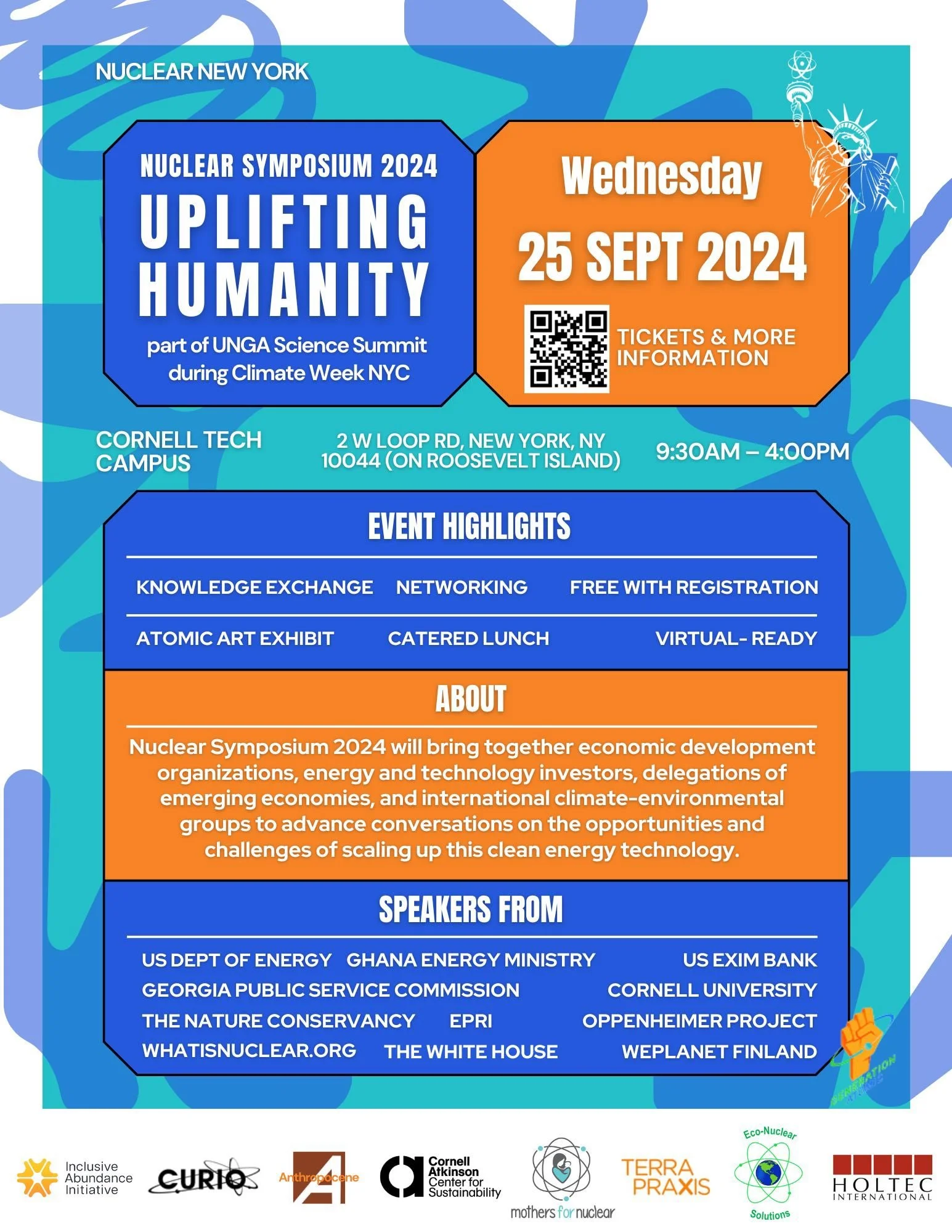 Hosted by our allies Nuclear NY, the Nuclear Symposium 2024 will bring together economic development organizations, energy and technology investors, delegations of emerging economies, and international climate-environmental groups to advance conversations on the opportunities and challenges of scaling up this clean energy technology.